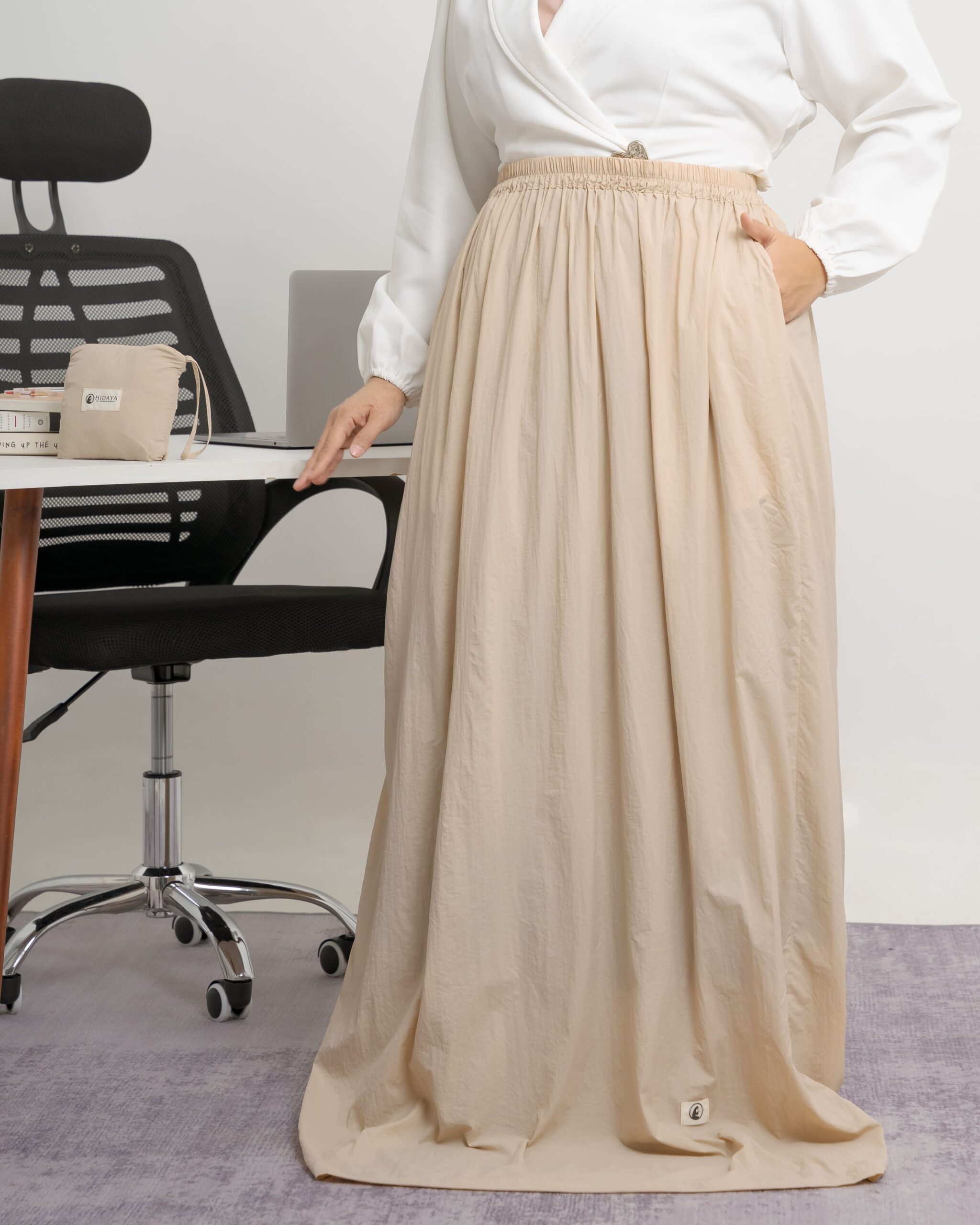 A light weight prayer skirt with pockets. The perfect companion—light, travel-friendly, and effortlessly elegant.